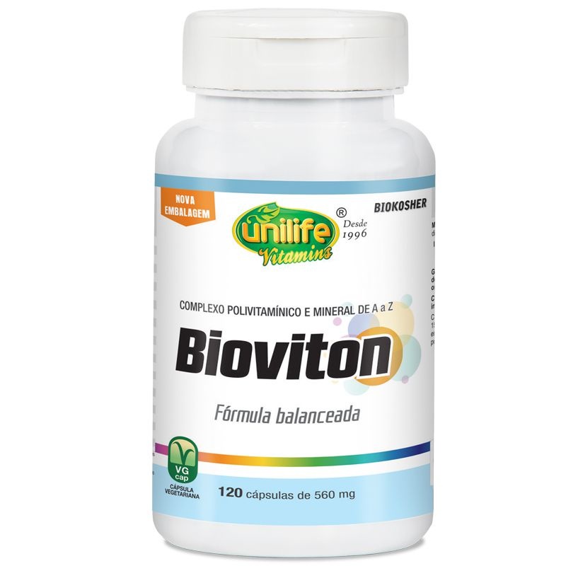 Bioviton Complexo Polivitamínico Unilife 120 cápsulas. Multivitamínico completo com 23 vitaminas e minerais. Suporta energia, imunidade, metabolismo e bem-estar geral para rotinas agitadas.