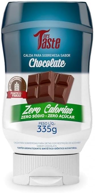 Calda Mrs Taste Chocolate 335g. Calda zero açúcar com sabor intenso de chocolate. Ideal para panquecas, waffles, sorvetes e iogurtes. Sem glúten, sem lactose. O prazer do chocolate sem comprometer a dieta.